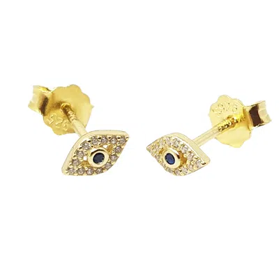 Women's Gold / Blue Dainty Evil Eye Gold Plated Minimalist Stud Earrings In Multi