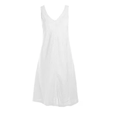 Women's White / Blue Tank Balloon Cotton Embroidered Dress With Rib Details In Multi