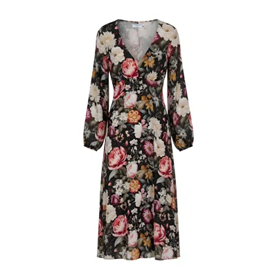 Women's Floral Viscose Dress With Pleats And Decorative Buttons Chocolate Romance In Brown