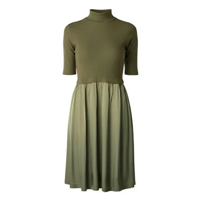 Women's Green Short-sleeve Dress With Rib Top And Satin Skirt Khaki