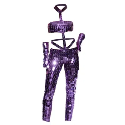 Women's Pink / Purple Discotika Purple Mirrored Catsuit By Dani Watanabe In Blue
