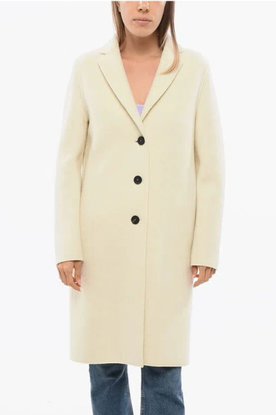 Virgin Wool Boiled Coat With 3 Buttons In Neutral