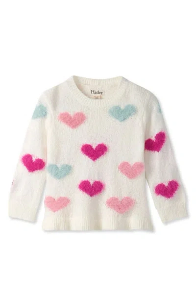 Babies' Heart Print Long Sleeve Sweater Dress In Pink