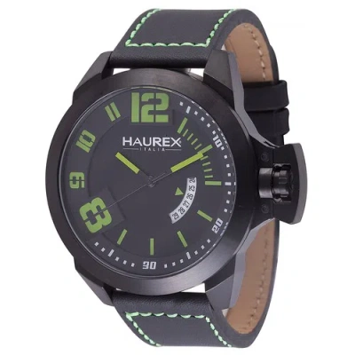 Pre-owned Italy Men's 6n509uan Storm Black Leather Date Wristwatch