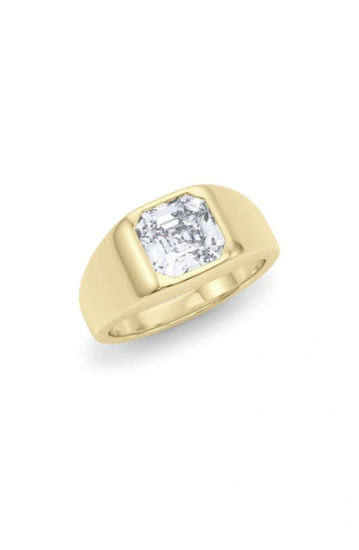 Asscher Cut Lab Created Diamond Signet Ring In 2.50 Ctw 18k Yellow Gold