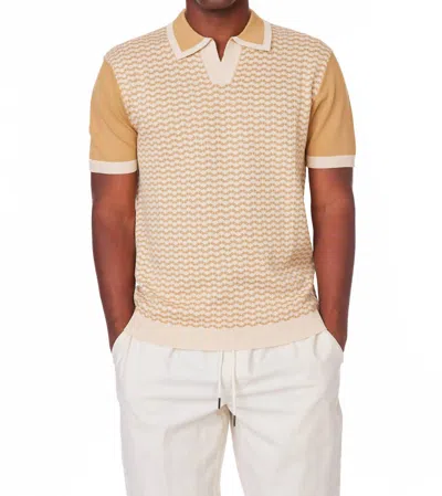 Men's Textured Short Sleeve Polo Shirt In Beige In Sand