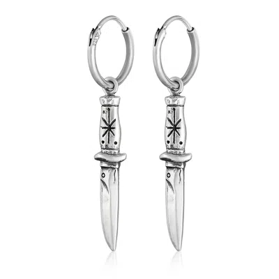 Men's Silver The Dagger Hoop Earrings