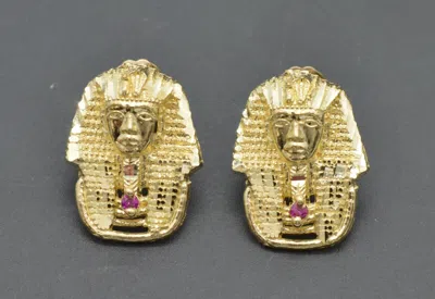 Pre-owned Real 10k Yellow Gold Pharaoh Egyptian King Stud Earrings 3.8gr
