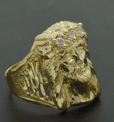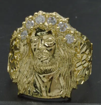 Pre-owned Real Solid 10k Yellow Gold Mens Jesus Nugget Cz Ring 21mm All Sizes