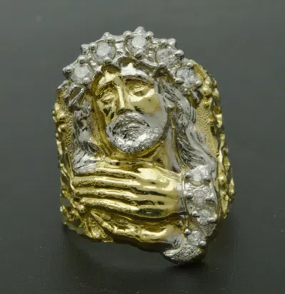 Pre-owned Real Solid 10k Yellow Men's Jesus Two-tone Ring