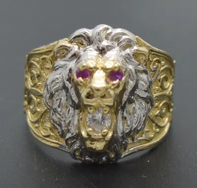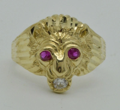 Pre-owned Real Solid 10k Yellow Gold Mens Red Eye Lion Ring 2.9 Grams All Sizes