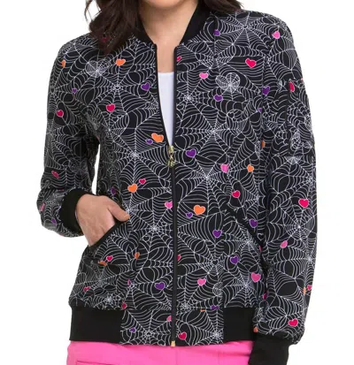 Wicked Cute Bomber Jacket In Wicked Cute Webs In Black