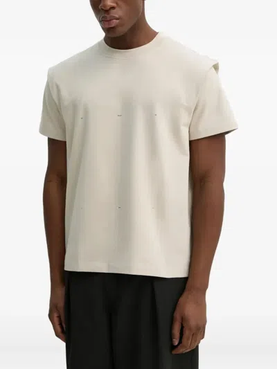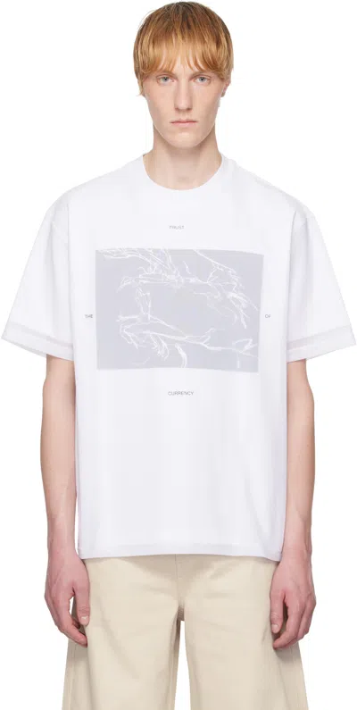 Short-sleeved Crew Neck T-shirt With Artistic Front Print In White