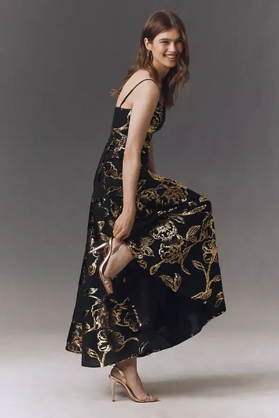 Cecilia Strapless Embroidered Floral Midi Dress In Black