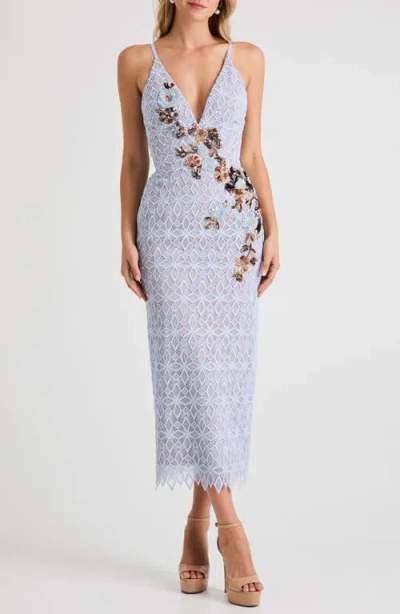 Gemma Floral Embroidered Midi Cocktail Dress In Blue