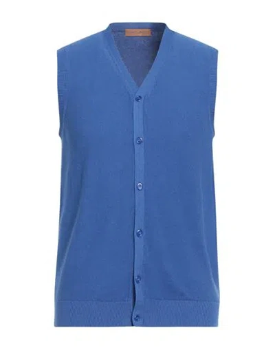 Man Cardigan Bright Blue Size 42 Cotton