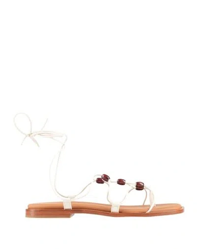 Woman Thong Sandal Ivory Size 6 Leather In White