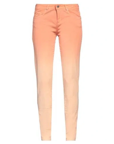 Woman Denim Pants Orange Size 28 Cotton, Elastane