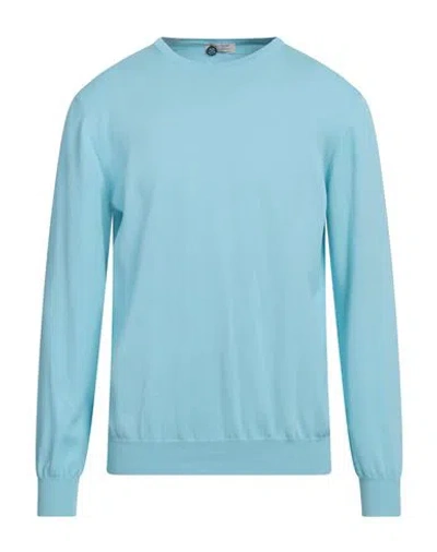 Man Sweater Turquoise Size 48 Cotton In Blue