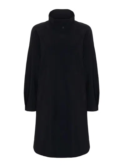 Press-stud Single-breasted Coat In Black