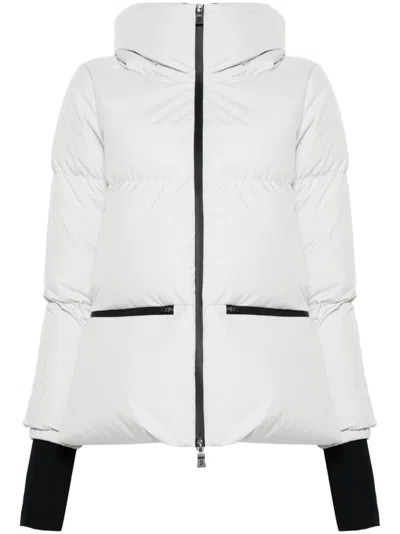 White Water-repellent Rain Jacket With Non-detachable Hood In Gray