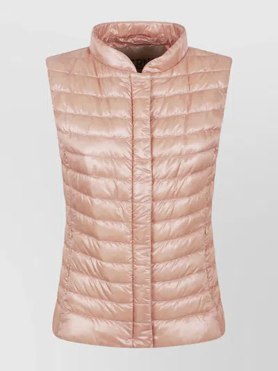 Quilted Sleeveless Lightweight High Collar Jacket In Pink