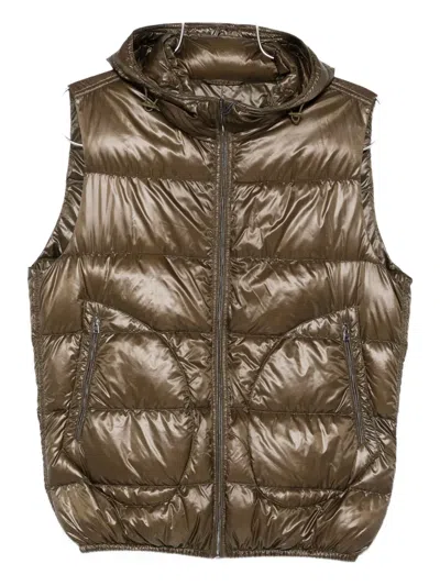 Hooded Quilted Gilet In Green