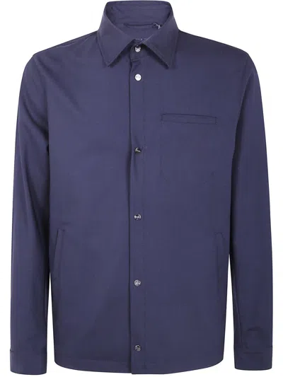 Long Sleeve Collared Shirt Jacket With Pocket In Blue