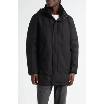 Windproof Hooded Down Parka In Black