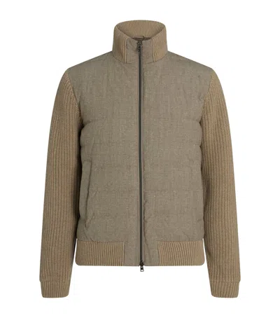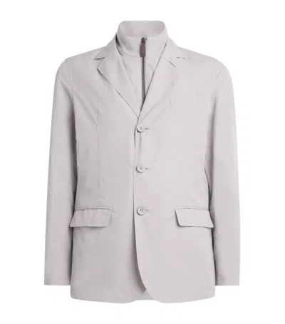 Padded Jacket With Notched Lapel And Quilted Design In Gray