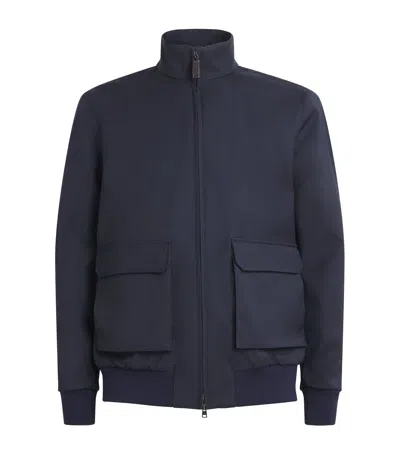 Men's Twill Car Coat W/ Removable Faux-fur Collar In Blue