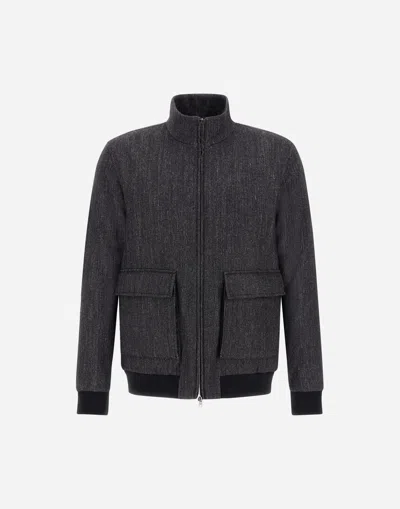 Bomber Jacket In Herringbone Wool Flannel In Black