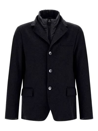 Button-up Blue Casual Jacket With Classic Cut And Timeless Appeal In Black