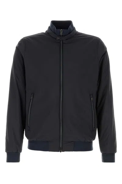 Navy Blue Stretch Nylon Windbreaker In Black