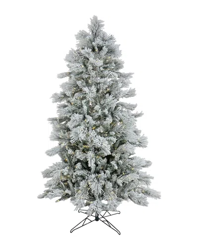 National Tree Company 7.5ft Slim Flocked Bavarian Pine Tree With Led Lights In Green