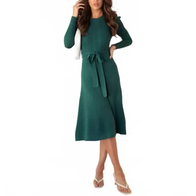 Gracie Tie Cocktail Cable Knit Midi Dress In Green