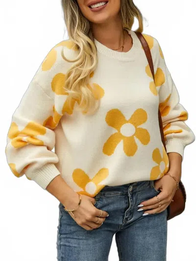 Pullover Floral Plus-size Sweater In Apricot In Neutral