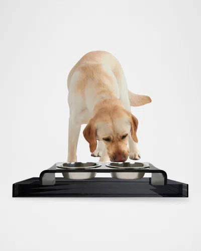Small Clear Double Bowl Pet Feeder With Black Bowls