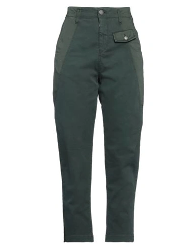 Woman Pants Dark Green Size 2 Cotton, Elastane