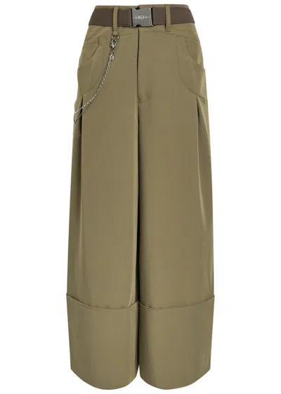 Gillie Belted Woven Wide-leg Trousers In Green
