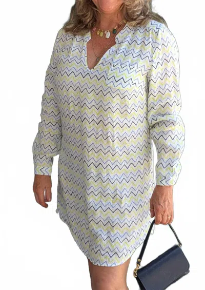 Bananakeet V-neck Dress In Blue Zigzag In Multi