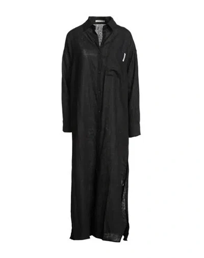 Woman Maxi Dress Black Size L Linen, Viscose