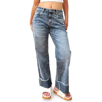 Jackie Side Slit High Waist Wide Leg Jeans In Blue