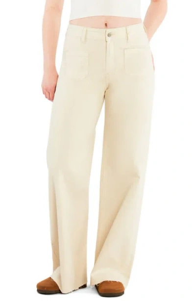 Patch Pocket Raw Hem Wide Leg Jeans In Neutral