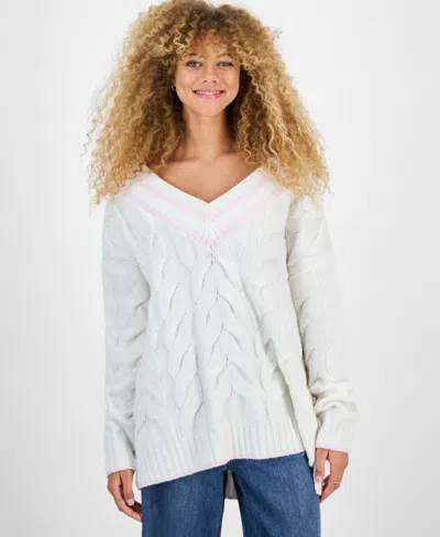 Juniors' V-neck Cable-knit Sweater In White
