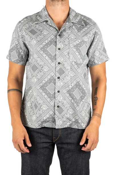 The Wrench Waffle Bandana Print Short Sleeve Button-up Camp Shirt In Gray Bandana