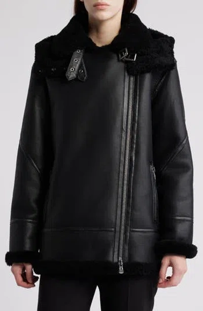 Soul Reversible Genuine Shearling Moto Jacket In Black