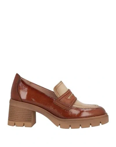 Woman Loafers Camel Size 6 Leather In Neutral