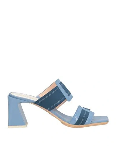 Woman Sandals Light Blue Size 6 Leather, Elastic Fibres, Synthetic Fibers