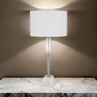 32 Inch Table Lamp With White Drum Shade, Marble Base, Brushed Steel In Metallic